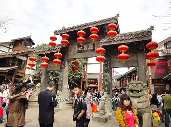 The majority of the houses on the street of Ciqikou date from the Ming and Qing Dynasties, periods during which many masterpieces of Chinese architecture were created. Much of the two and three storey construction is made of bamboo and timber. Blue bricks and pillars set off the snow-white walls that contrast in turn with vermilion doors and lattice windows. Black tablets and lanterns adorn the gates to complete the authentic and traditional appearance of the properties. The quietly flowing waters of the Jia Ling River pass by the front of the village and have been its lifeblood for as long as anyone can remember. For it was the river that brought goods and people here as well as carrying local products off to customers at home and abroad.The three notable attractions of the village are the tea bars, the artists' studios and the Shu Embroidery workshops. Surprisingly, there are more than a hundred tea bars each with their own particular characteristics. Here friends enjoy a chat or meet to discuss business. So the tea bars offer the opportunity for you to meet the locals and also become acquainted with the unique folk opera.