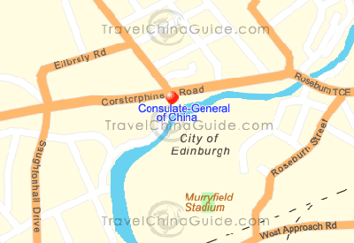 Go from the City Center and go westward to Murryfield Stadium. The consulate is close to the stadium and it is a pale yellow building.